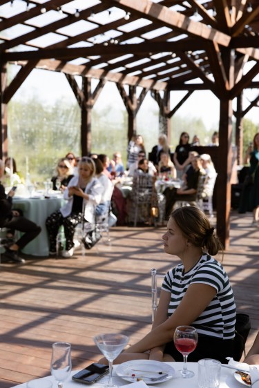 Из банкетного зала есть удобный выход на пирс к озеру, где можно встретить красивый закат, сделать запоминающиеся фото или просто отдохнуть.